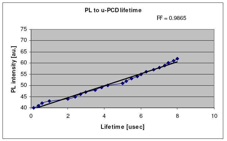 和傳統的微波光電導衰減(μ-PCD,Microwave Photoconductive Decay)測試結果的一致性比較。